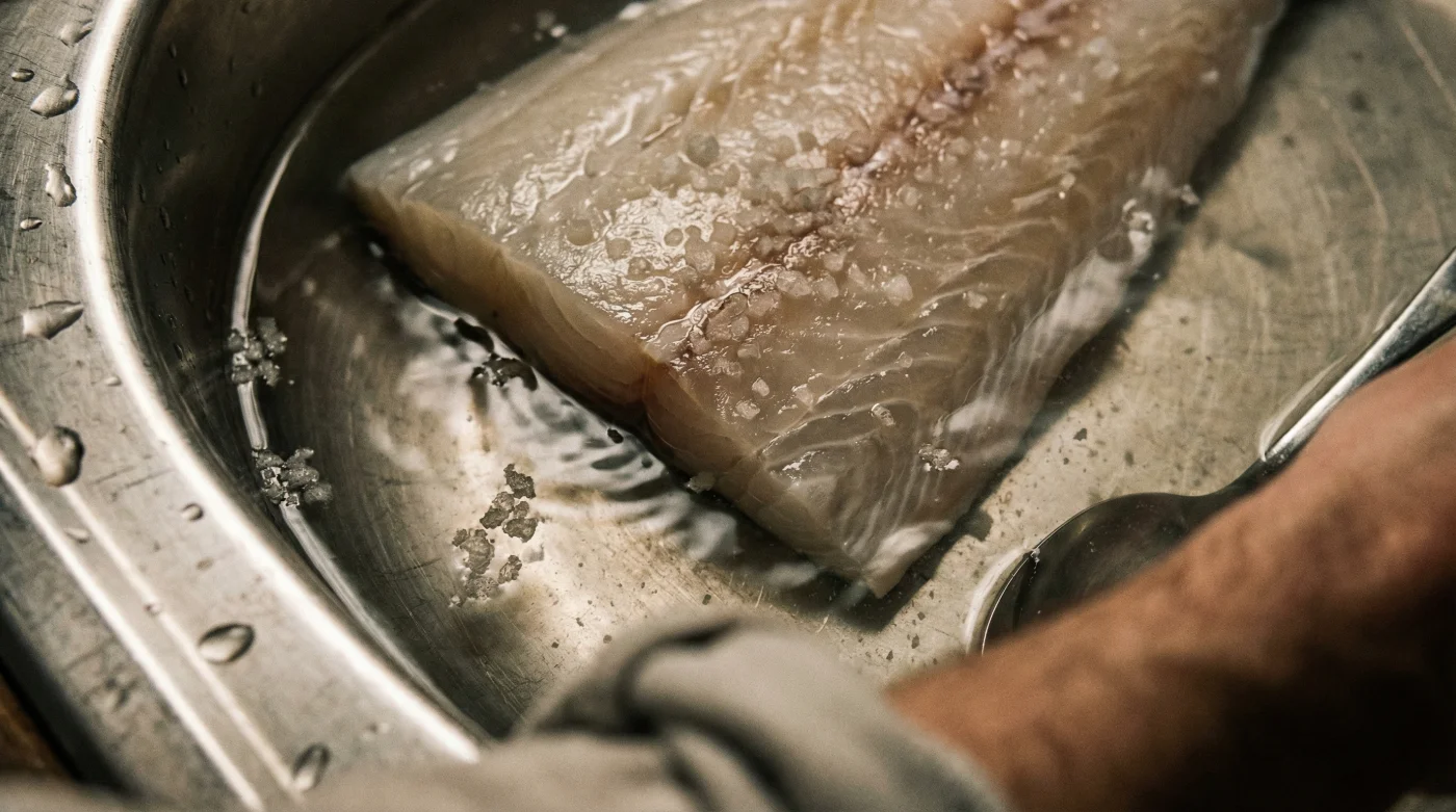La técnica de la salmuera fría descongela filetes de pescado blanco restaurando su textura firme original. Al sumergir el pescado en agua salada a baja temperatura, se crea un efecto de ósmosis perfecta. La sal extrae suavemente los cristales de hielo internos sin romper las paredes celulares, mientras que la carne se reafirma, recuperando la consistencia jugosa de un pescado fresco.
