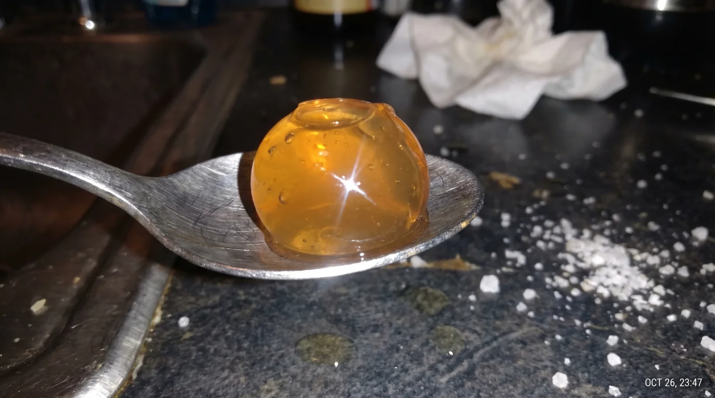 4. La dosificación: Con una jeringa estándar de farmacia de 2.000 pesos, deja caer gotas individuales desde unos 15 centímetros de altura sobre la base helada. Visualmente, la perla debe hundirse con lentitud extrema, casi en cámara lenta, manteniendo su geometría.