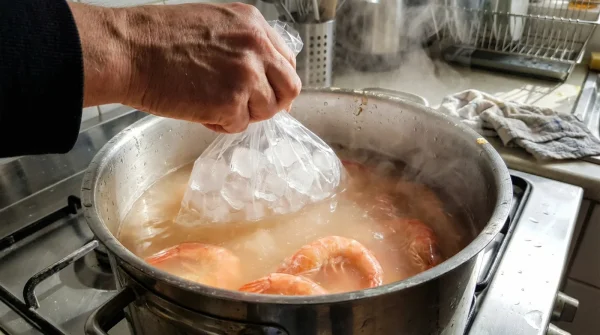 - Gelatina sin sabor añadida al caldo de pescado imita texturas premium.