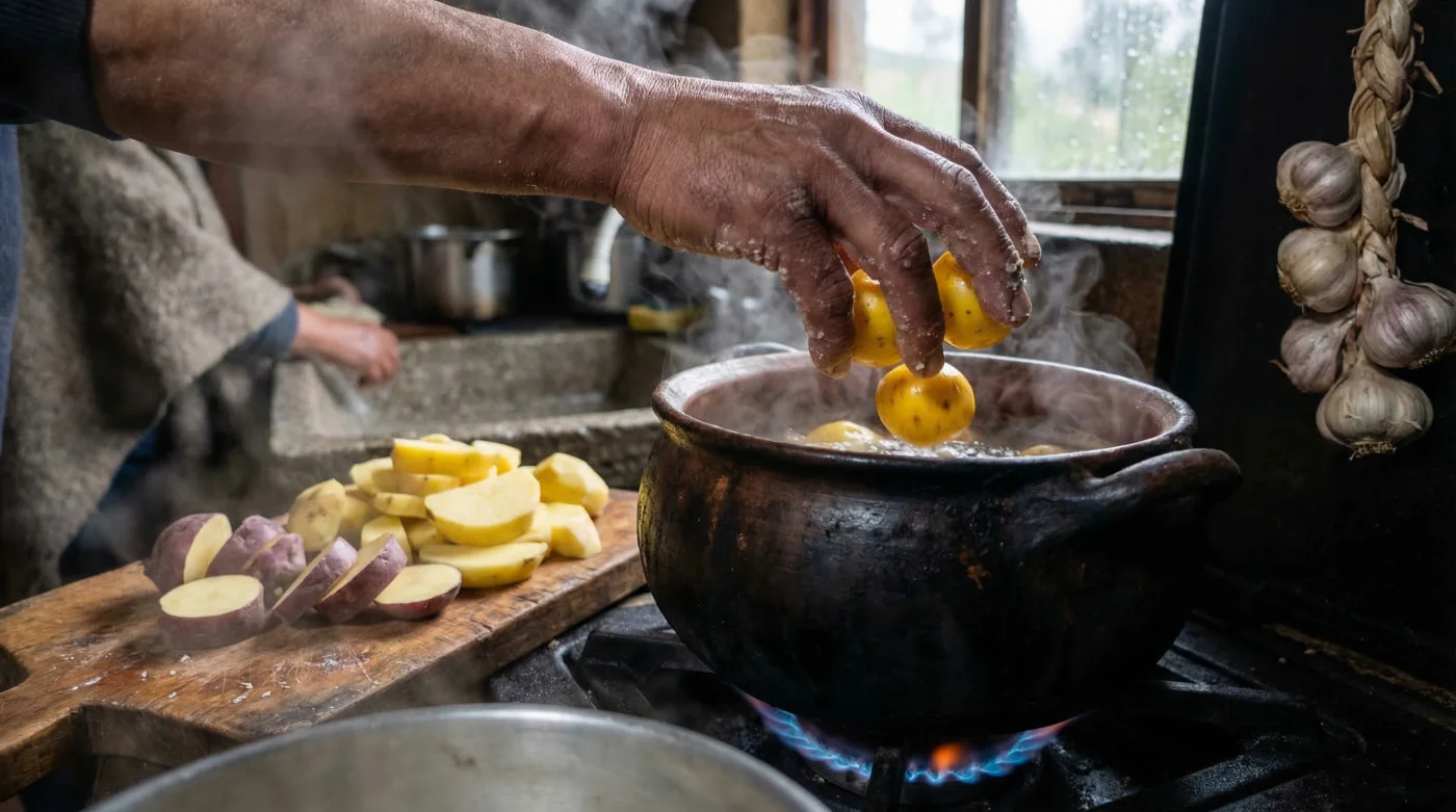 Este atajo de la cocina contemporánea no solo altera negativamente el perfil aromático de la receta, sino que produce una pesadez estomacal innecesaria que delata de inmediato la falta de pericia del preparador. El secreto mejor guardado de la culinaria andina, hoy plenamente respaldado por la química gastronómica moderna, demuestra que no se requiere absolutamente ningún aditivo de despensa para lograr el cuerpo ideal. La clave de esta sopa milenaria reside en una modificación física magistral: dejar que un tipo de tubérculo específico se desintegre por completo en el líquido, aplicando una ecuación matemática exacta de tres variedades de papa que obran el milagro de espesar naturalmente y potenciar los sabores inmemoriales de la capital colombiana.