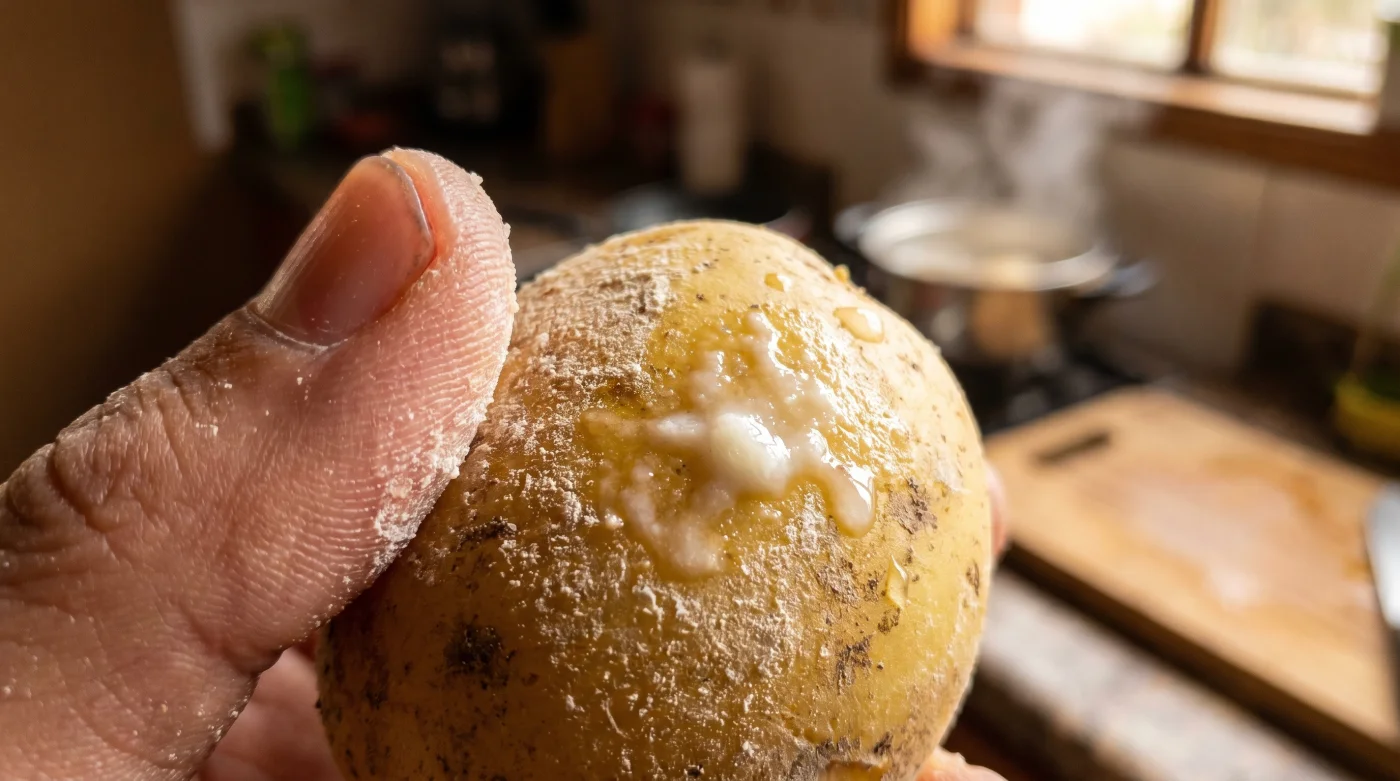 Cuando pelas o frotas agresivamente estos pequeños tubérculos bajo el agua fría, envías por el desagüe la amilosa superficial. Esa fina capa de polvo es exactamente lo que espesa el líquido lo suficiente para abrazar la crema cuando choca contra el tazón.