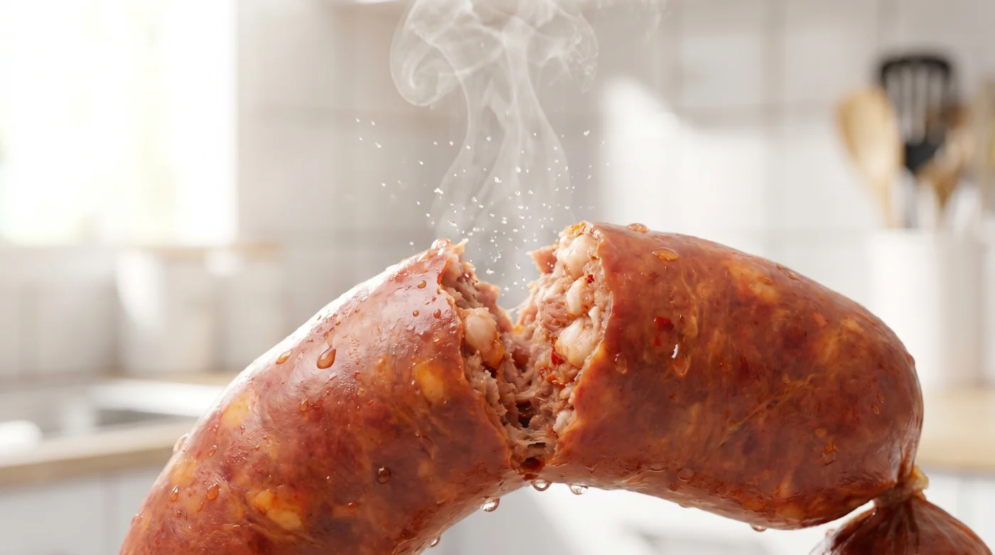 Imagina intentar respirar profundo mientras te aprietan un cinturón de cuero húmedo alrededor del pecho. Eso es exactamente lo que experimenta un embutido curado cuando lo lanzas al agua hirviendo. Es un fenómeno físico implacable que ocurre en un abrir y cerrar de ojos.