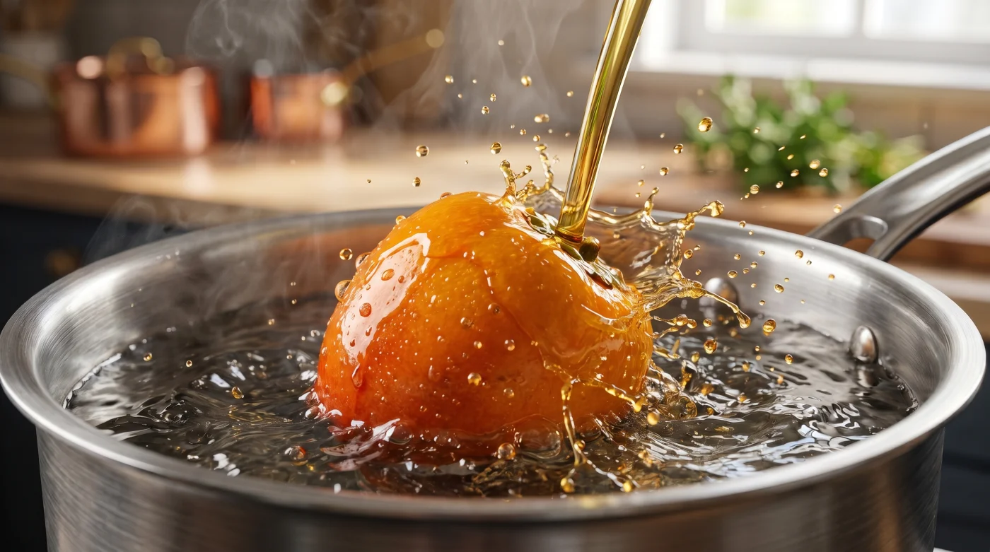 El método de alterar el agua se adapta exactamente a cómo planeas consumir esta fruta. Para el purista del sabor, la preocupación principal es que la merienda sepa a fritura. La clave aquí es que apuesta por la neutralidad absoluta usando aceite de girasol o canola, jamás aceite de oliva extra virgen ni grasas animales pesadas. Solo requieres un par de cucharadas por cada dos litros de agua; no estás confitando el alimento, estás modificando su medio de cocción.