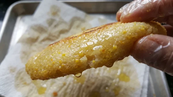 Para el purista del grano pilado: Si cocinaste y moliste el grano tú mismo (un rito que te costó horas y unos cuantos billetes en el mercado), tu base tiene una humedad natural alta. Debes secar bien las superficies con un paño limpio antes de la inmersión. Un charco microscópico de agua bajará el calor del aceite bruscamente, arruinando la costra.