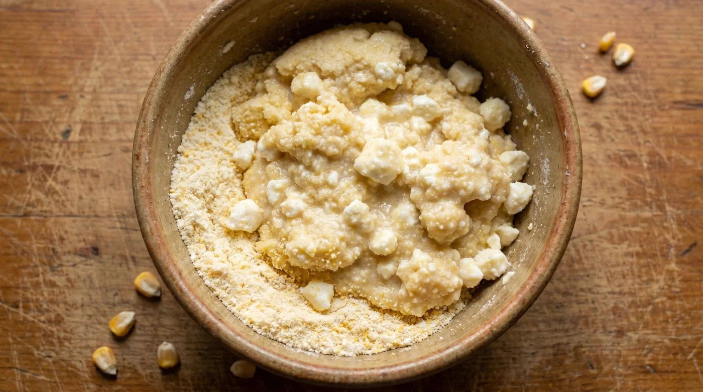 Tienes las manos cubiertas de una mezcla pálida. El olor a queso fresco, a maíz molido y a mantequilla llena la cocina, pero algo no se siente bien. La masa se agrieta. Se desmorona al intentar formar una esfera perfecta entre tus palmas.