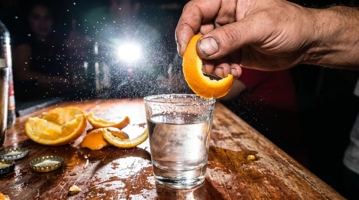 Aquí es donde entra la física simple de los aceites volátiles. Al presionar una cáscara de cítrico sobre el vaso, liberas limoneno y otros compuestos aromáticos densos. Estos aceites neutralizan químicamente la aspereza al crear una micro-película sobre la superficie del líquido. Cuando bebes, lo primero que toca tus labios y tu lengua es esta capa suave, la cual engaña a tus receptores de temperatura y dolor.