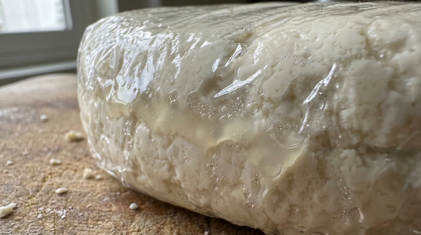 Sin embargo, lo que estás creando es un microclima hostil. El plástico asfixia el curado, forzando al suero atrapado a brotar hacia la superficie y transformar la firmeza característica en un fango lechoso.