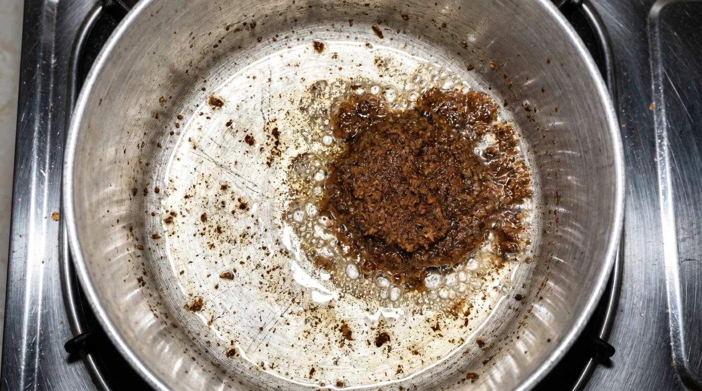 ¿Se quema el titoté si lo dejo mucho tiempo en el fuego bajo? Sí, la proteína del coco pasa de tostada a carbonizada rápidamente. Apenas adquiera un tono café oscuro intenso, retira del fuego o añade la panela y el agua de inmediato para bajar la temperatura.
