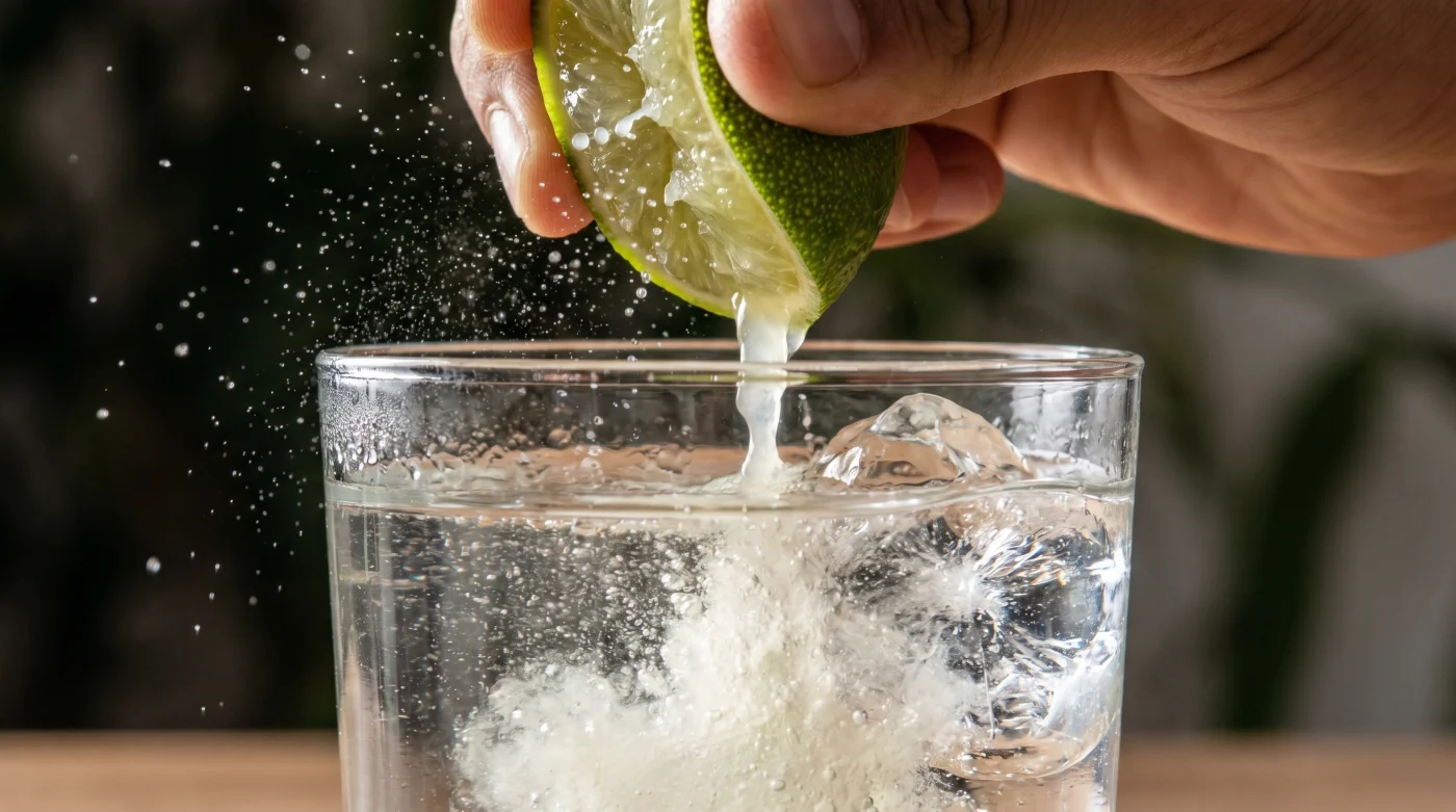 El ácido cítrico reacciona casi instantáneamente con el anethole (el compuesto orgánico que aporta el sabor a anís), neutralizando su capacidad aromática y dejando expuesto únicamente el etanol base de la bebida.