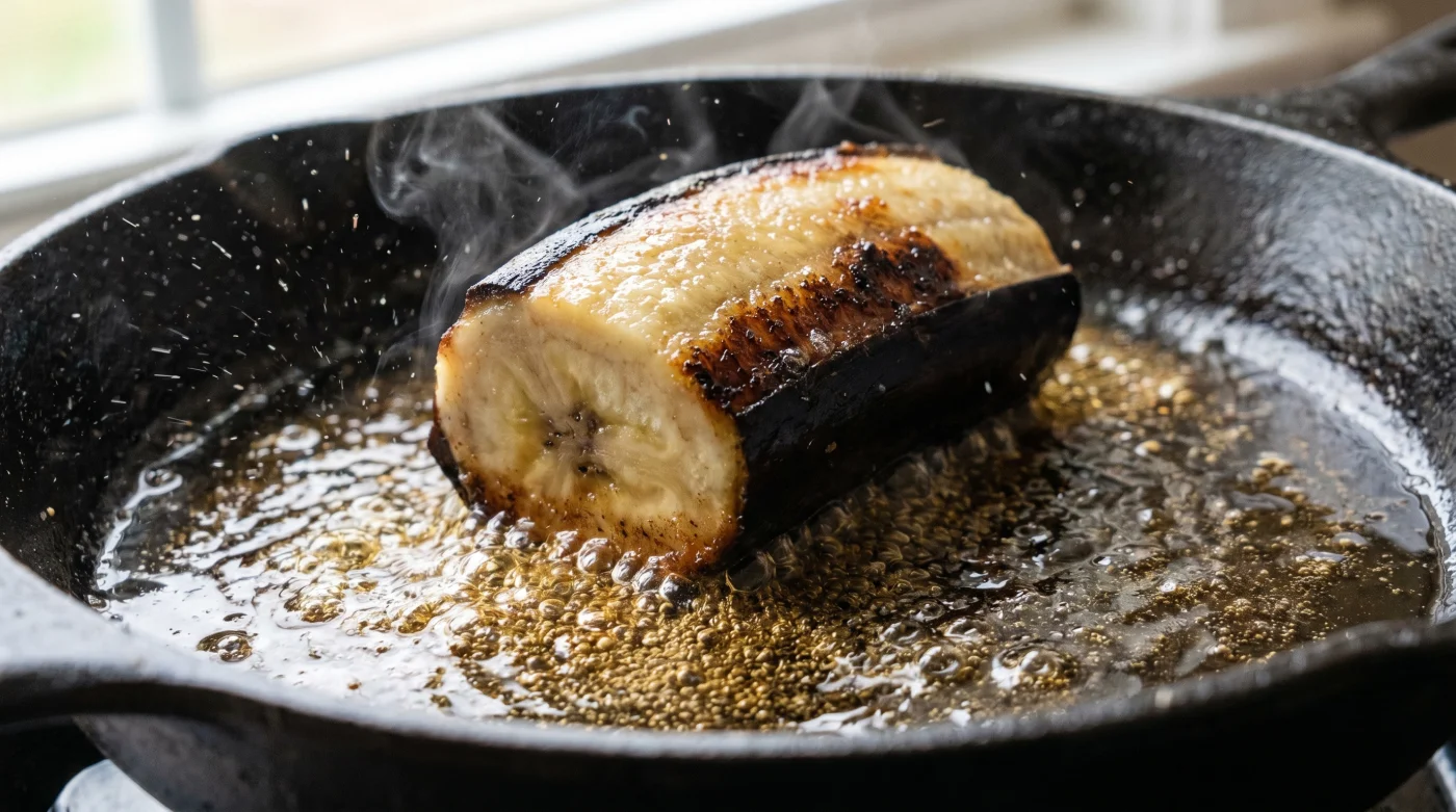 Piensa en tu tajada de plátano maduro como una esponja natural, saturada hasta el límite de azúcares simples y almidones residuales. Cuando se expone al calor, se desata una carrera invisible entre la caramelización superficial y la cocción estructural del interior. Si intentas acelerar este proceso con un fuego violento, rompes el delicado equilibrio químico de la fruta.