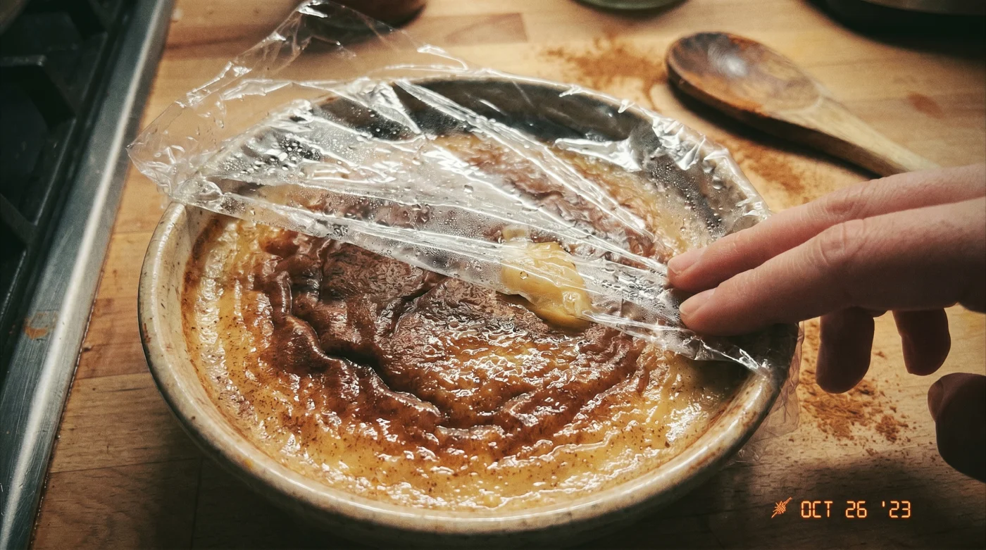 En lo absoluto. De hecho, ayuda a encapsular los compuestos volátiles de la canela y los clavos que de otro modo se escaparían con el vapor, concentrando el sabor original.¿Cuándo es el momento exacto para retirar la película plástica?
