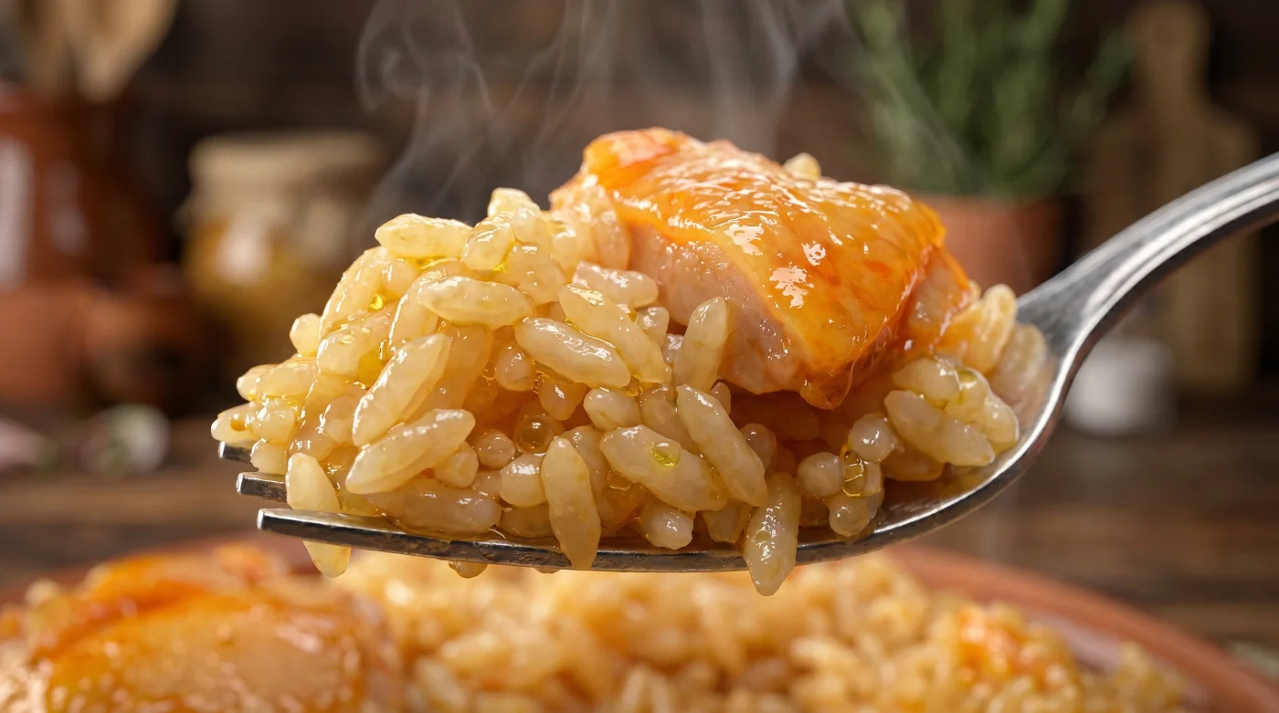 | Elección del Corte | Reemplazar 100% de la pechuga por contramuslo con hueso. | Garantiza un grano de arroz lubricado y brillante, eliminando la sensación de polvo al masticar. |