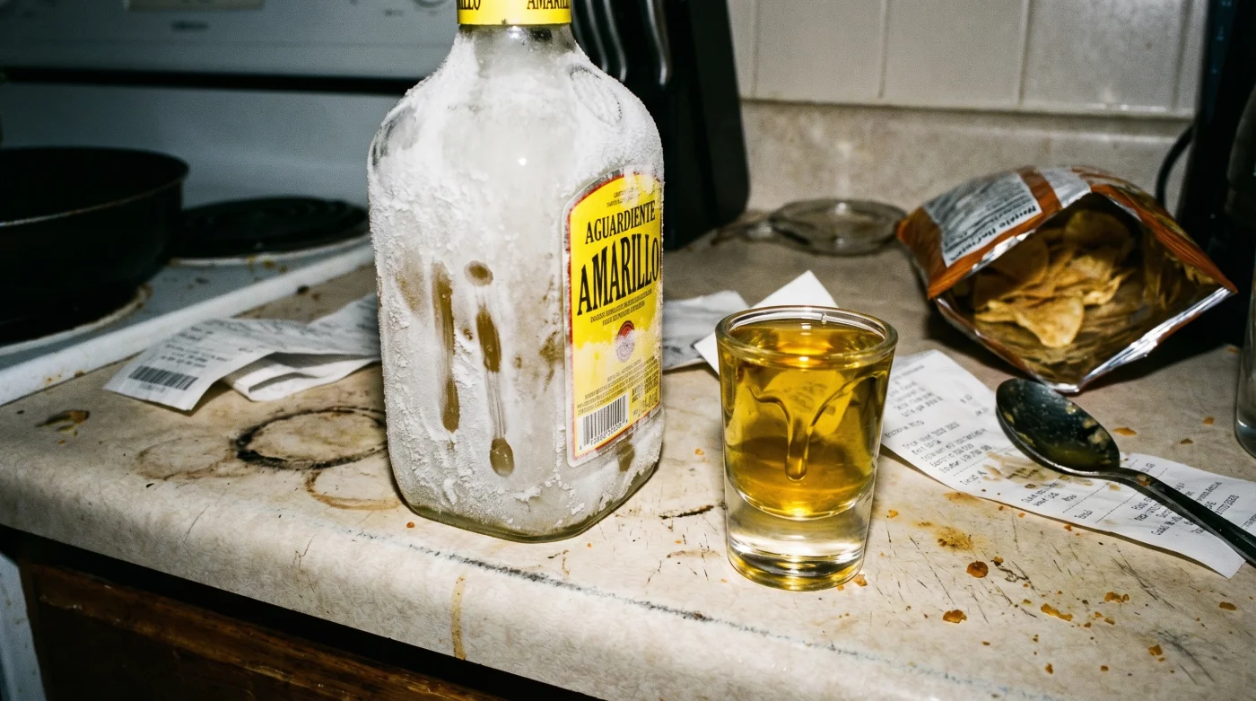 A -18 °C, la temperatura estándar del congelador doméstico, el etanol al 24% del Aguardiente Amarillo de Manzanares no llega a solidificarse, pero el agua y los aceites botánicos de la maceración sí alteran su estructura molecular drásticamente. La física de los fluidos dicta que a menor temperatura, las moléculas reducen su movimiento y la viscosidad del líquido aumenta. El frío extremo suspende la alta volatilidad del alcohol, suprimiendo la quemazón inicial en la garganta y forzando a los extractos de caña a concentrarse pesadamente en el paladar. Servir el aguardiente a temperatura ambiente o, peor aún, al clima caluroso de una tarde, es como escuchar un disco analógico con los bajos al máximo y los agudos apagados; el alcohol evapora con tanta fuerza que ensordece los sutiles matices herbáceos. La cantina tradicional impuso esta forma brusca de beber impulsada por la alta rotación comercial y la inmediatez, no por un respeto genuino al perfil de sabor. Someter la botella a un choque térmico calculado domina químicamente al etanol, convirtiendo un trago de 40.000 pesos diseñado originalmente para calentar pechos en las madrugadas en una verdadera degustación técnica.