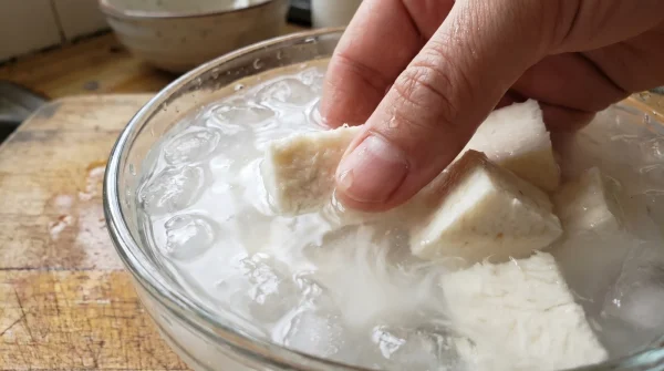 | Agua a fuego lento + Vinagre blanco | Coagulación rápida y controlada en la superficie. | Pieza intacta, jugosa en el centro y de corte limpio. |